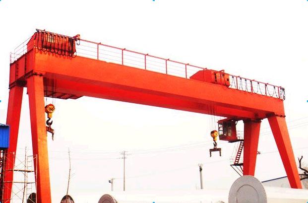 門式起重機是橋式起重機的一種變形。主要用于室外的貨場、料場貨、散貨的裝卸作業(yè)。它的金屬結(jié)構(gòu)像門形框架,承載主梁下安裝兩條支腳,可以直接在地面的軌道上行走,主梁兩端可以具有外伸懸臂梁。門式起重機具有場地利用率高、作業(yè)范圍大、適應(yīng)面廣、通用性強等特點,在港口貨場得到廣泛使用。