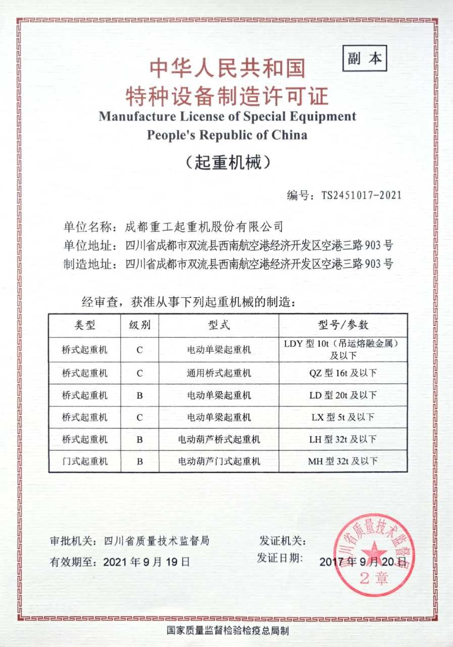 [ 發(fā)布日期:2018-6-8 來源:成都重工起重機股份有限公司 瀏覽次數(shù):5541 ]